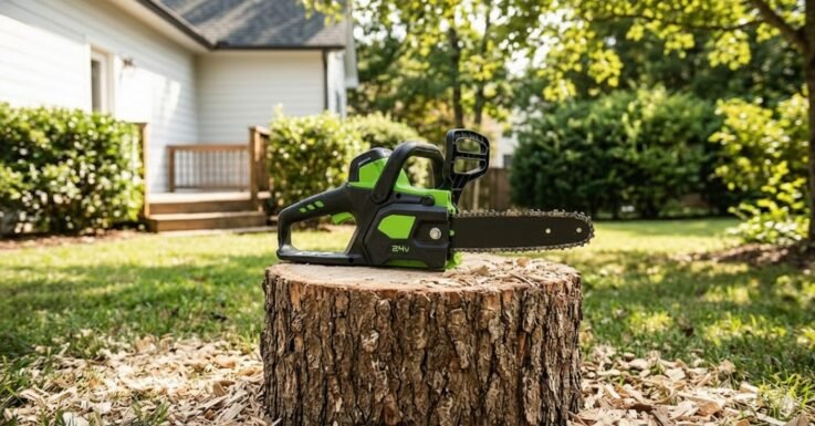 The Greenworks 24V Mini Chainsaw is built for convenience and safety. Weighing just 3.4 pounds (with the battery), it is incredibly easy to maneuver. The major advantage here is compatibility: the battery works with over 125 other Greenworks tools, making this a smart buy if you already own their equipment.